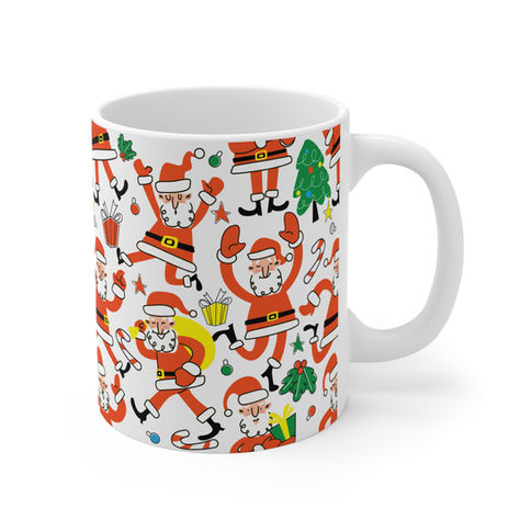 Brighten your mornings with this festive 11oz mug, perfect for sipping your favorite hot beverage. Adorned with cheerful Santa Claus illustrations, it exudes a playful holiday spirit that warms the heart. This mug is an ideal companion for cozy winter evenings, holiday gatherings, or early mornings filled with the promise of joyful celebrations. Perfect for families, friends, or holiday gift exchanges, it adds a whimsical touch to any kitchen or office. Celebrate Christmas, winter festivities, or simply indulge in the joy of the season with a mug that makes every sip a little brighter.